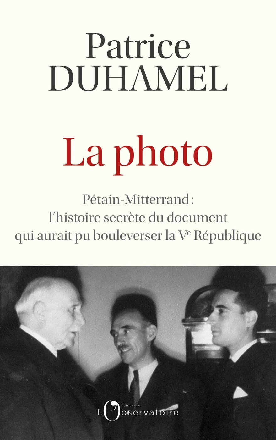 Mannen är president François Mitterrand och boken heter La photo. Pétain–Mitterrand: l’histoire secrète du document qui aurait pu bouleverser la Ve République. Författaren heter Patrice Duhamel, tidigare politisk kommentator och bland annat en gång chef för republikens statliga tv och radio. Hans mer kände bror Alain har också ägnat sig åt politik och journalistik.