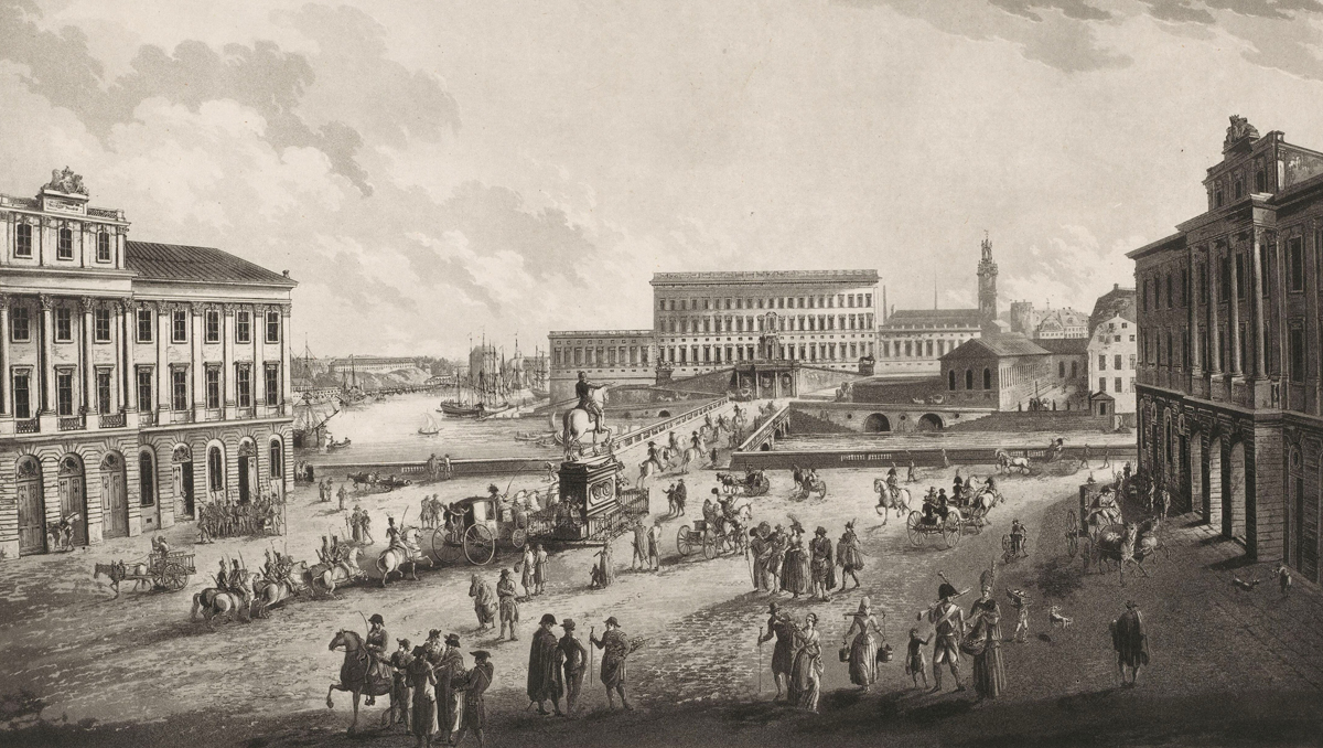 På Norrmalm fanns redan en rutnätsstad med ursprung i 1600-talet, vilket Bedoire behandlar i sin tidigare bok Stormaktstidens Norrmalm. Men under 1700-talet hade stadsdelen stagnerat. Flera av de pampiga adelspalatsen var ombyggda till hyresbostäder och andra ändamål. Mot slutet av 1700-talet kom början till ett uppsving med Gustav III:s monumentalbyggnader vid dåvarande Norrmalmstorg (senare Gustav Adolfs torg): Operahuset och prinsessan Sofia Albertinas palats (idag UD). Samtidigt uppförde ätten Bonde ett storslaget palats i kvarteret Rosenbad, som bidrog till att försköna miljön längs Strömmen.
