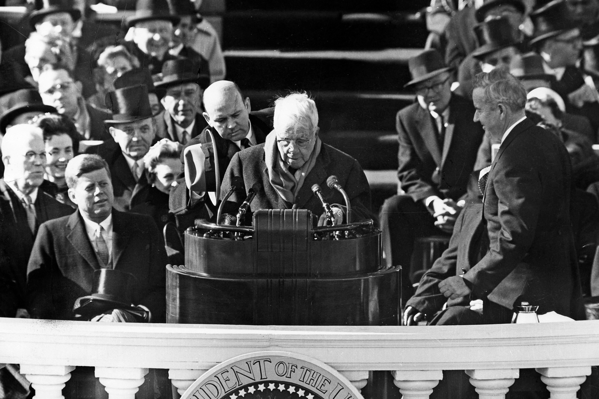 Frost blev därmed den förste diktare som medverkade vid en presidentinstallation. Han var sedan länge USA:s mest kände, läste och hyllade poet. Kennedy var själv en av hans många läsare och brukade avsluta sina tal med slutraden i en av Frosts mest älskade dikter: ”And I have miles to go before I sleep”. Att de båda kom från nordöstra USA och att Frost hade stött Kennedy i valkampanjen och till och med kallat honom ”en puritan från Boston” gjorde säkert också sitt till. Frost var en mästerlig föreläsare och recitatör, en publikdomptör. Vad kunde gå fel?